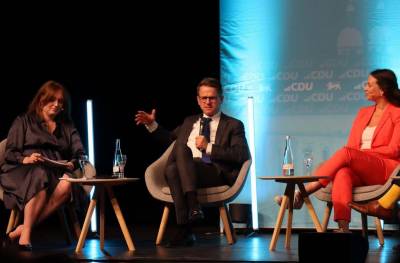 Im Anschluss an den Impuls des Generalsekretärs folgte eine Podiumsdiskussion mit Caroline Bosbach, der Bundesvorsitzenden des jungen Wirtschaftsrates, Hartmut Jenner, dem Vorstandsvorsitzenden der Alfred Kärcher SE und Norbert Haug, dem ehemaligen Motorsportchef von Mercedes-Benz.